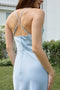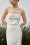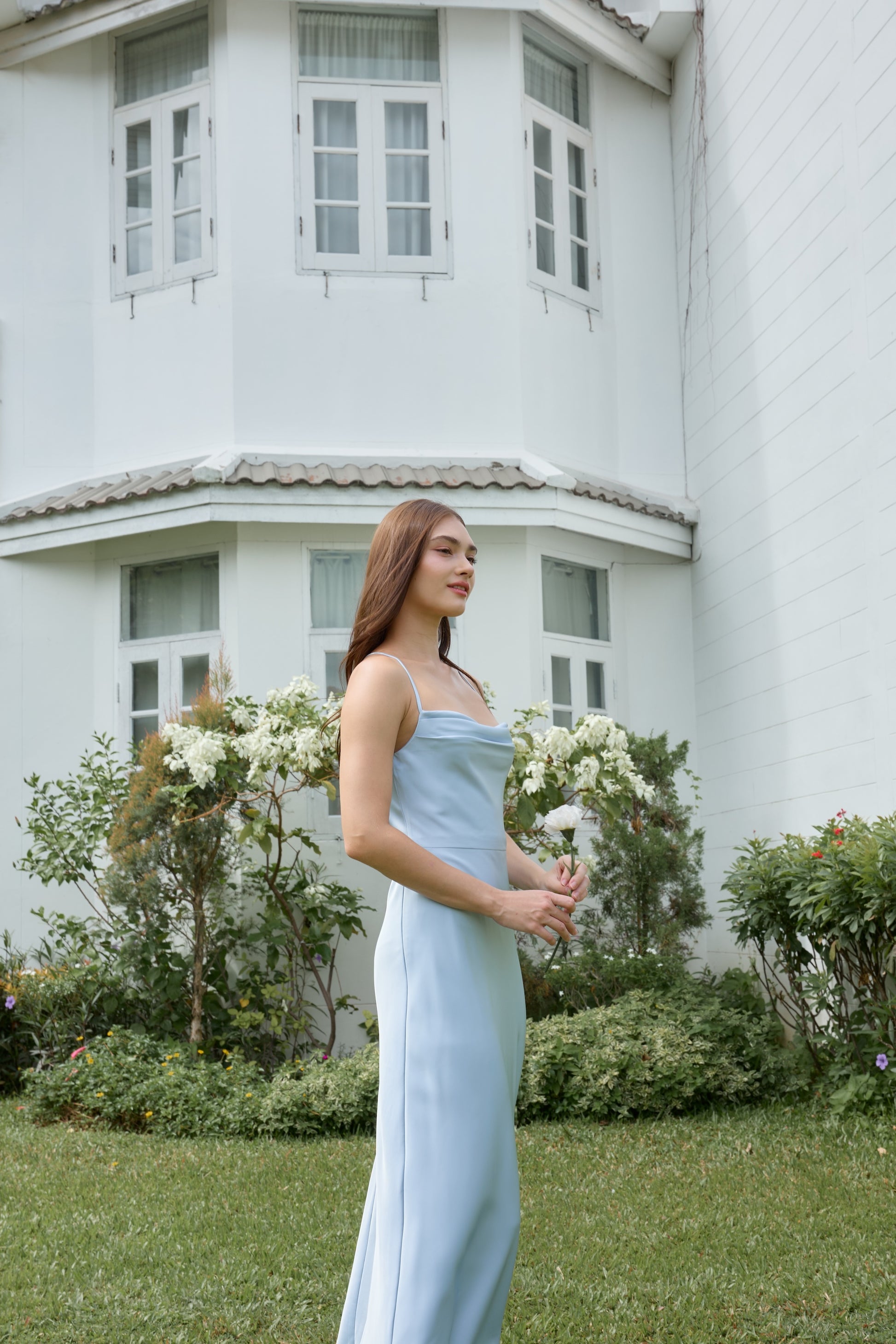 Designed with adjustable straps and a cross-back detail, this dress combines ease with elegance. Soft pleats frame the front bodice, flowing into a bias-cut silhouette that drapes beautifully over the body. Finished with a concealed back zip for a clean, seamless look.