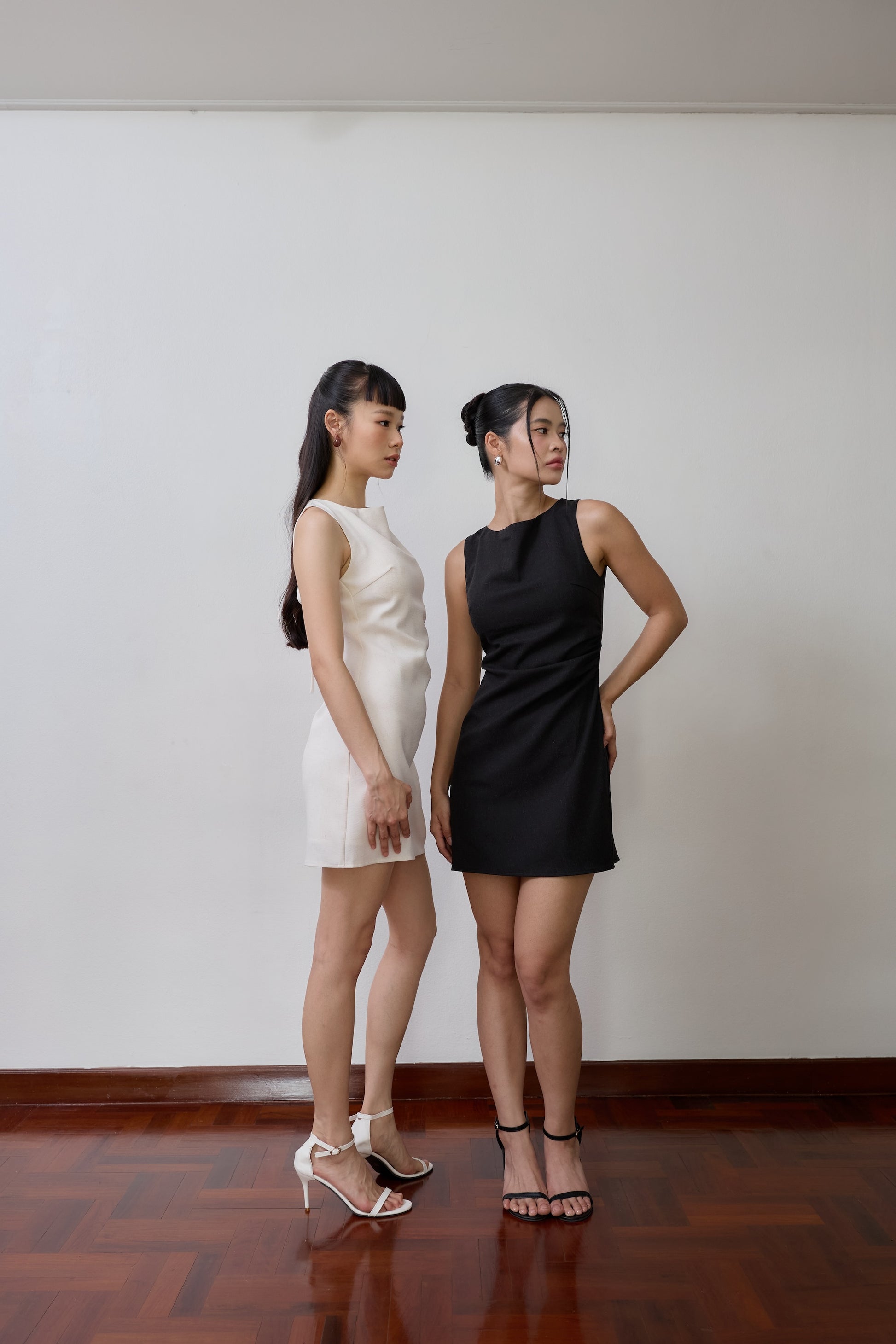 A chic and classic boat neck silhouette with a low back and tie detail.